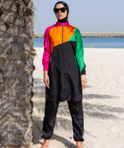 At Remsa Swimwear, we prioritize quality and comfort by using premium fabrics that ensure durability, flexibility, and an elegant fit. Our burkinis are made from polyamide, elastane, and polyester, each carefully chosen for their unique benefits. Polyamide provides a lightweight and soft texture while offering excellent resistance to wear and quick-drying properties. Elastane enhances flexibility and ensures a comfortable, form-fitting design that allows ease of movement. Polyester, known for its durability, offers high resistance to chlorine and saltwater while maintaining its color and shape over time. Additionally, our fabrics provide breathability and UV protection, making them ideal for modest swimwear. With our commitment to high standards, we deliver burkinis that combine style, functionality, and long-lasting quality, ensuring a superior swimwear experience.